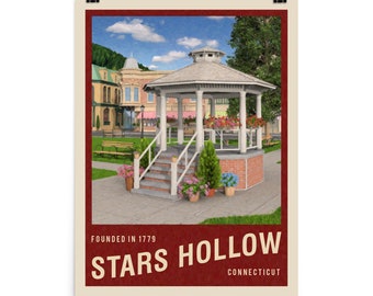 Stars Hollow Travel Poster - Gilmore Girls - Lorelai - Rory - Luke - Stars Hollow - Retro Travel Print - Gazebo
