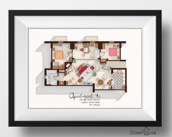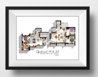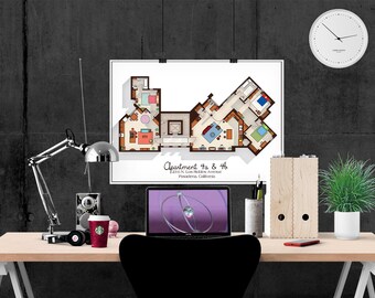Seinfeld Poster - Seinfeld TV Show Apartment Floor Plan- Seinfeld TV Show Layout- Apartment of Jerry Seinfeld- Gift for Seinfeld Fan