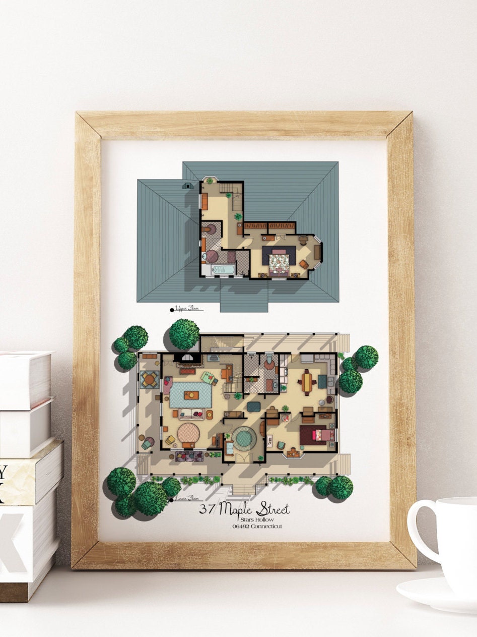 NEW- Gilmore Girls House Floor Plan- Lorelai and Rory's House Layout - Stars Hollow Poster- Gilmore Girls Poster- Gift for Gilmore Girls Fan