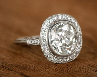 Antique Cushion Cut Diamond and Sapphire Halo Platinum Engagement Ring