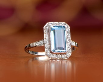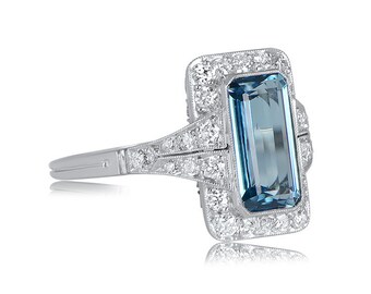 1.68 Carat Natural Aquamarine Ring - Platinum and Diamond Halo