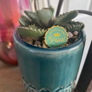 3/4 inch cloisonne hard enamel pin. Available in pink/gold or blue/silver. Black rubber clasp.