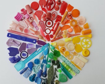 Please note this is my smallest colour wheel. Because it is quite small most of the pieces will be unrecognisable plastic bits, broken and tumbled by the sea.