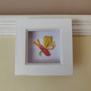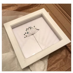 It is in a boxframe to protect it and it measures 23x23cm overall.
