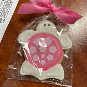 ● Each cookie is wrapped in a clear cello bag, then hand tied with 5/8" wide satin ribbons.