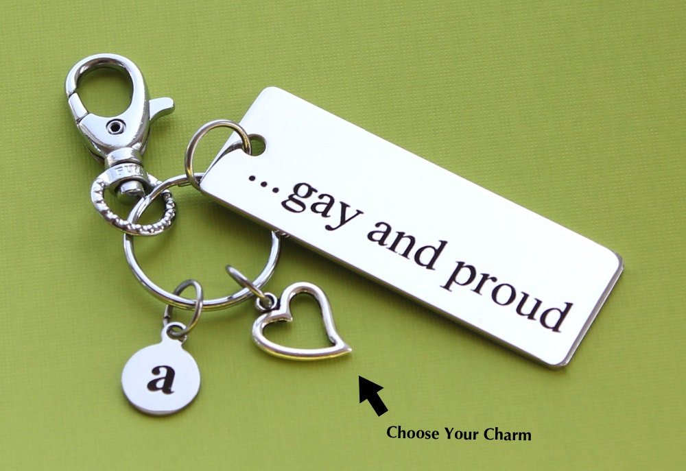 Personalized Gay Key Chain Gay and Proud Stainless Steel Customized with Your Charm & Initial -K134
