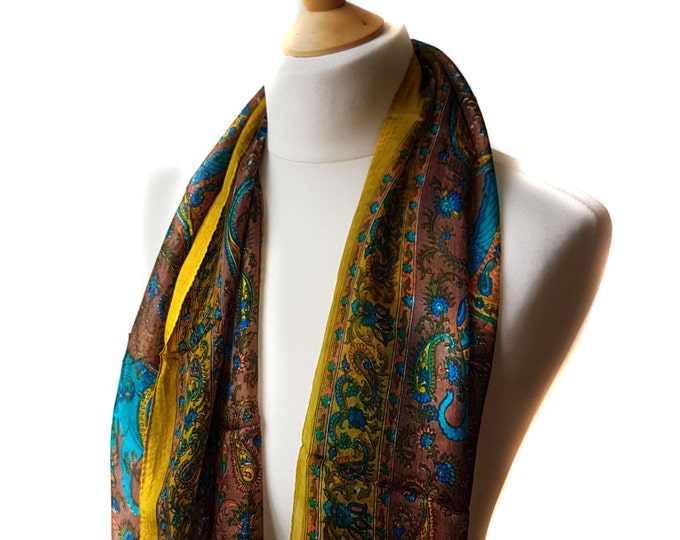 Pure Crepe Silk Lightweight Scarf Wrap Multicoloured Yelow Blue Indian Floral Paisley Silk Scarf Pattern Elegant Wedding Gift Present Mum