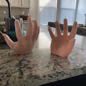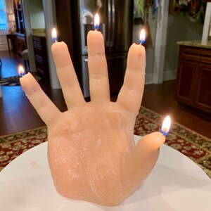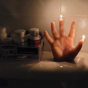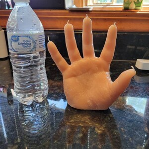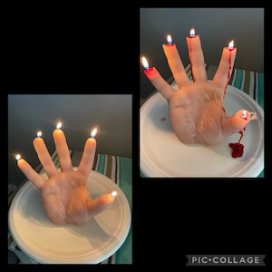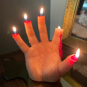I really love this candle! It was a bit of a gamble for me because although I'm a horror fan I have never purchased a anything quite so realistic as this. But when I received it I was firstly, amazed at just how much this looks like an actual hand (you can actually see the fingerprints and lines in the hand so it looks like a totally real hand. I have no idea how they achieved this effect but it's SOOO cool!) Also, the fingers start dripping red 'blood' after a few minutes and it looks sooo rad! I love it and will be back for more! Very impressed, also it is much bigger than it looks in the picture.