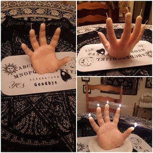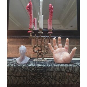 Creep up your home decor with your very own one of a kind, life size hand candle! As this hand of glory melts, the fingers ooze blood, making for a great conversation piece that guests will definitely admire! Every candle is HANDmade by Creepy Candles™. This candle is unscented.