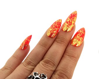 Black and Red Press on Nails, Fake Nails, Stiletto Nails, Almond Nails, Black, Red