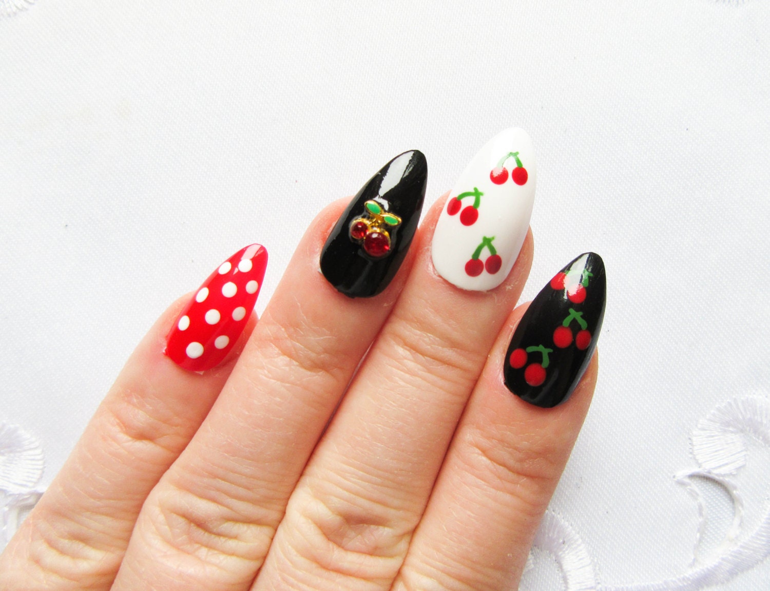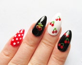Rockabilly Press on Nails, Cherry, Fake Nails, Stiletto Nails, Almond Nails, Cherries, Pin Up, Nails