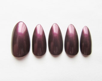 Black Amethyst Nails, Stiletto Nails, Fake Nails, Almond Nails, Purple, Black, Press on, Nails
