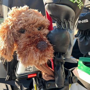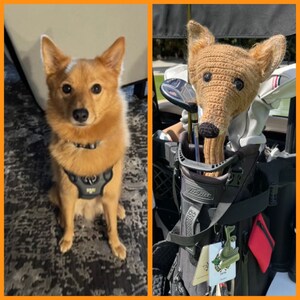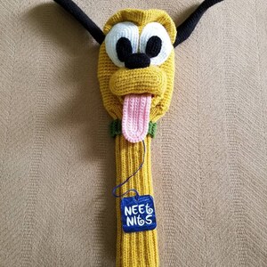This listing is for a hand-knitted Yellow Puppy Golf Club Cover.