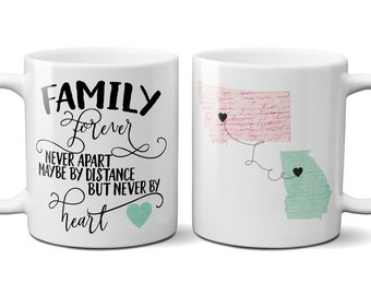 Family Forever Never Apart Maybe By Distance, Long Distance Mug, Family Mug, State to State Mug, Long Distance Family Gift, 11 or 15oz.