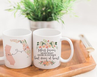 Moving Away Gift for Sister. Long Distance Mug. Going Away Gift. Sister Mug. State to State Mug. Sisters Forever Never Apart Coffee Mug