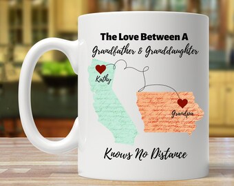 grandfather gift from granddaughter, personalized grandpa gift, Custom Long Distance Mug, State To State Mug, Long Distance Gift