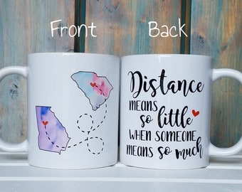 Distance means so little when someone means so much, long distance mug, best friends mug, state to state mug, going away gift, custom mug