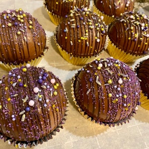 Materials: Dark chocolate powder, Sugar, Vanilla powder, lavender, dried lavender, chocolate, english lavender