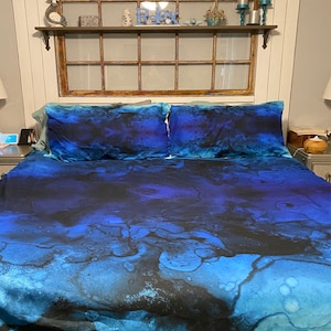 Duvet Covers and comforters are both made from our 100% blended poly microfiber. The microfiber material is soft and smooth and provides a sleek, slick look for your bedroom. Since our process binds the ink into the fiber, you can machine was your comforter or duvet cover in the washing machine with ZERO fear of damage (Just don't use bleach, and wash in cold water). Since very few things can penetrate the fabric fiber, they are also incredibly stain resistant.Please note, while we have done our best to accurately represent the color, position, and scale of this design, the finished product may be slightly different than appears in the preview