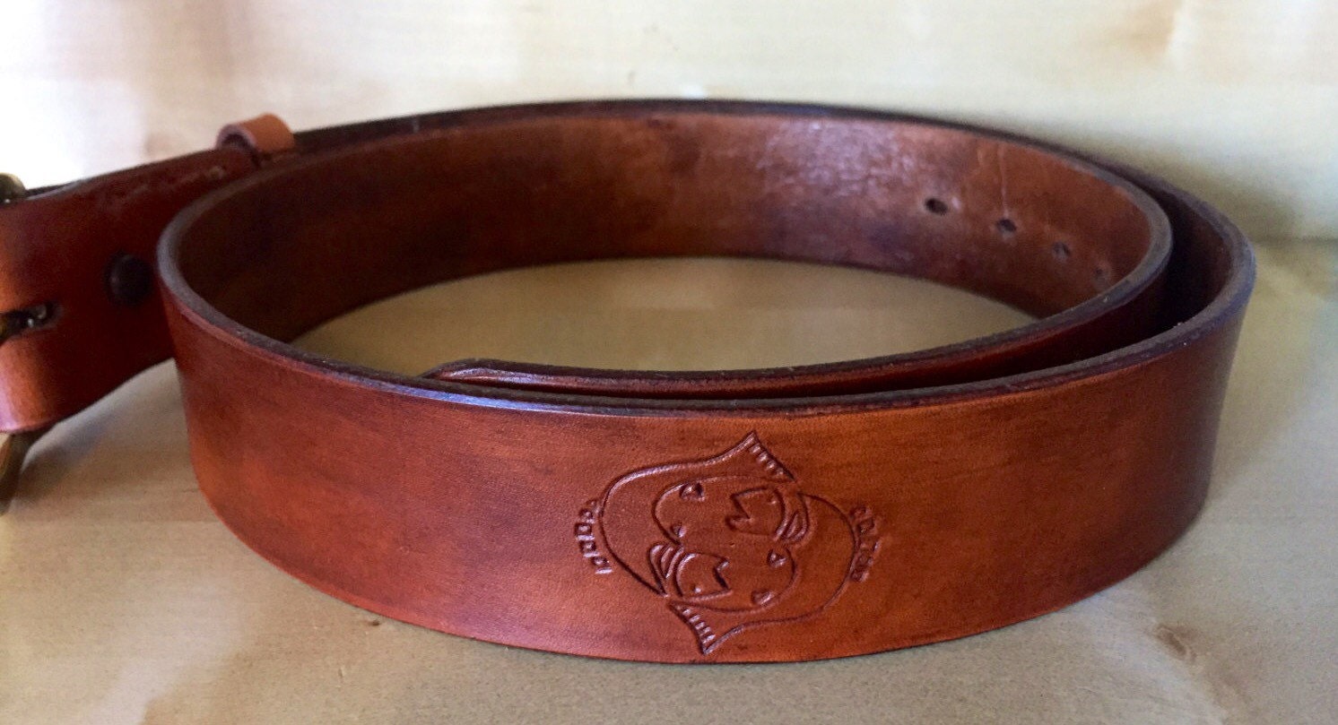 I can do any of the colors in the last photo, please leave note for color choice. If no color is listed, your belt will be made with acorn brown, the color shown in the preview pictures. Small images and glyphs, such as the Pisces symbol pictured, are included. If you want a larger, or full length image, please contact me for cost.