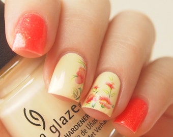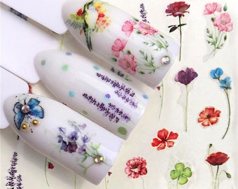 Red poppy nail decals/ Floral nail decorations/ Nail art stickers/ Nail design/ Nail water decals/ Manicure supplies/ art. ble558
