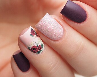 Dark burgundy rose nail decals/ Dark rose nail stickers/ Nail water decals/ Floral nail stickers/ Nail decorations/ Nail art/ art. ble842
