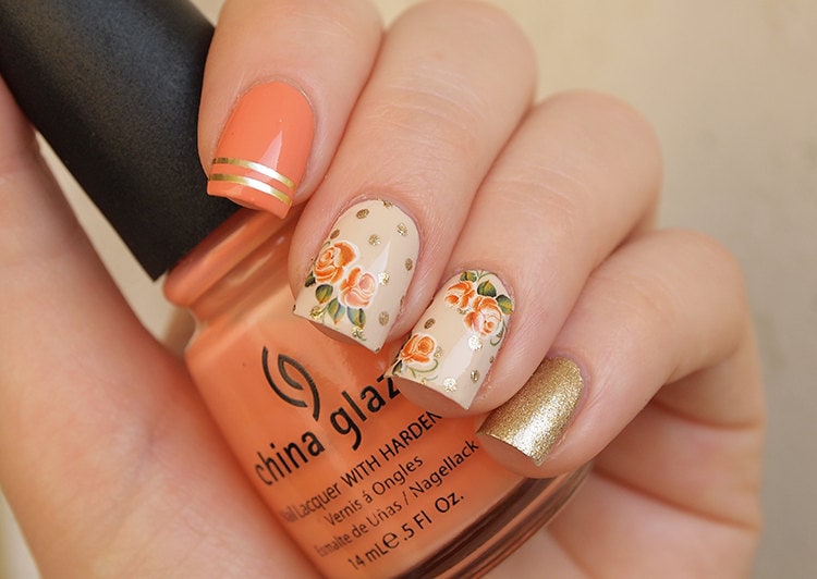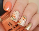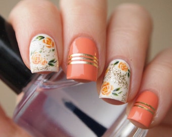 Orange rose nail decals/ Nail stickers/ Nail art/ Floral nail decorations/ Floral nail decals/ Manicure supplies/ art. 546