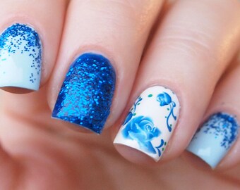 Deep blue floral nail decals/ Nail water stickers/ Rose nail water decals/ Nail decorations/ Nail art supplies/ Floral nails/ art. ble102