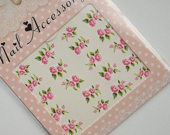 Soft pink floral nail decals/ Rose nail stickers/ Floral nail decorations/ Nail water decals/ Nail art suppilies/ Nails/ art. ble1446