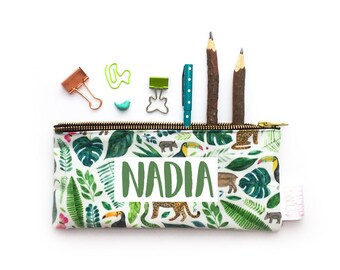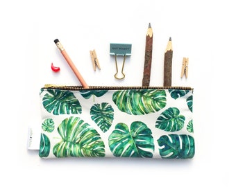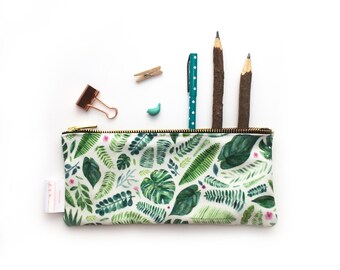 Emeralds, Tropical Leaves, Pencil Case, Emerald, Leaves, Cosmetic Bag, Tropical Pencil Case, Exotic Print, Pouch, Zipper Pouch, organiser, s