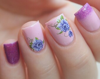 Two colors floral nail decals/ Blue floral decals/ Purple floral decals/ Nail art stickers/ Nail water decals/Nail decorations/ art. ble1958