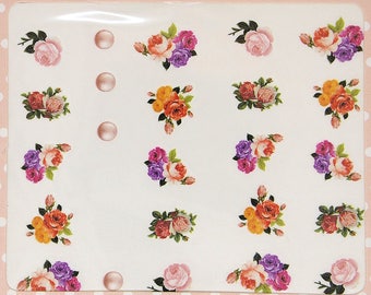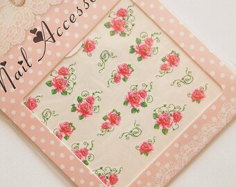 Pink floral nail water decals/ Summer nail stickers/ Floral nail art/ Nail decorations/ Nail art supplies/ Nails/ art. ble1710