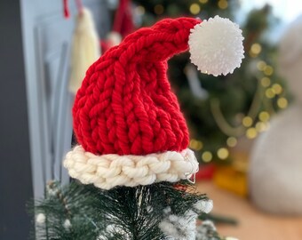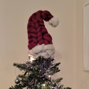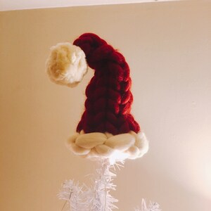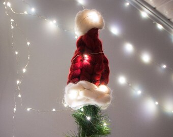 Christmas Tree Topper - Chunky Knit Santa Hat Tree Topper - Chunky hand knitted Christmas Hat
