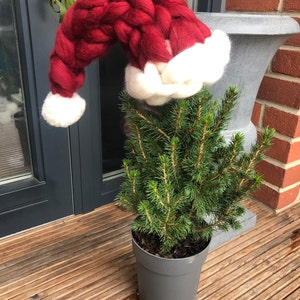 Break with tradition to give your tree a fresh and fun new look. A Knitted santa hat tree topper can bring both classic cosy knitting and stylish new design to your festive home. Hand knit on large needles in my home studio in Devon. Each one is slightly different and unique.