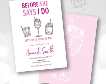Perfect Bachelorette Party Invitation for a night out on the town! This listing is for a digital file and does not include printed invitations. This listing is completely customizable and colors, texts and fonts can be changed.