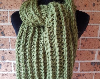 Long Green Winter Scarf - Light Green Crochet Scarf - Gift idea - Unisex scarf