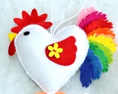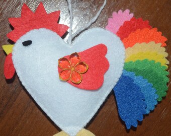 Felt rooster ornaments handmande felt ornaments chicken Housewarming/Christmas home decor Baby shower eco friendly New Year 2017