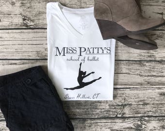 Gilmore Girls "Miss Patty's School of Ballet - Stars Hollow, CT" White V-Neck Tee