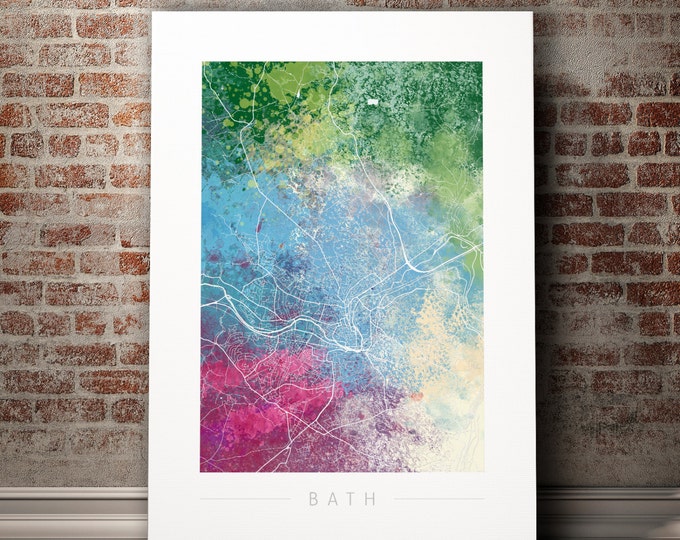 Bath Map - City Street Map of Bath, England - Art Print Watercolor Illustration Wall Art Home Decor Gift - Nature Series PRINT