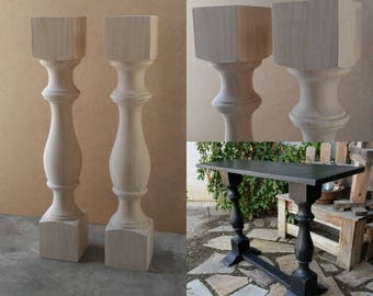 Unfinished Farmhouse Dining Table Legs- Wood Legs. Turned Legs. Hardwood. Chunky. Wide Legs. Large!