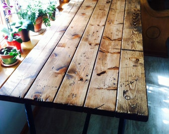 Can be used with pine or hardwood table tops without an issue. Wood is clean and medium density for maximum compatibility