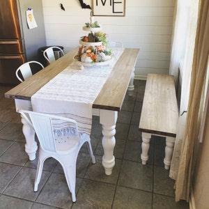 LOVE these table and bench legs!!! Made our farmhouse table dream a reality!!!