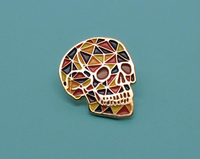 Skull enamel pin / Crystal pin / Geometric pin / Autumn colour / Human skull