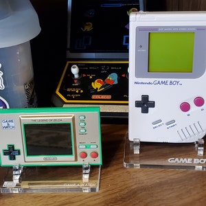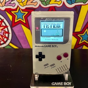 This stand is laser cut and features laser-etched graphics. It is specifically designed to hold your original Game Boy portable console.