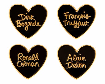 Classic film heart enamel lapel pin - Choose Alain Delon, François Truffaut, Ronald Colman, or Dirk Bogarde