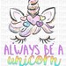 Bottom: "...then always be a unicorn. Adriana's 1st Birthday"