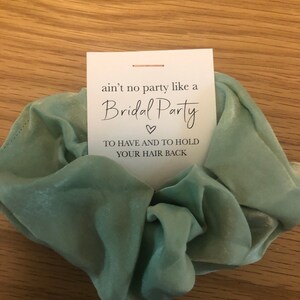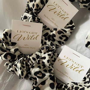These sparkling elastic hair ties come affixed to a personalized card and packaged in a clear cello envelope, perfect for gifting to your guests.