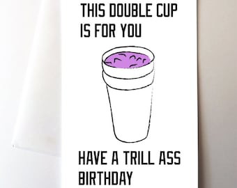 Turnt Up Lit Cake Happy Birthday Greeting Card, 40 oz, Xanax, Lean, Double Cup, Blunt
