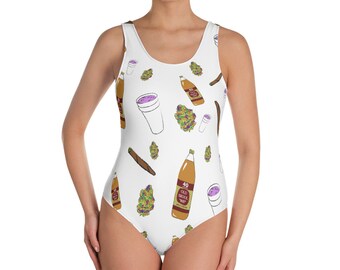 Women's Turnt Up One Piece Bikini, 40 oz, blunts, double cup, nugs