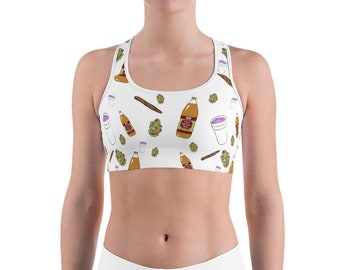 Women's Turnt Up Lean Sports Bra, 40 oz, double cup, nugs, blunts, lean